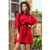 Elegantní dámské šaty v červené barvě. Tento model má 3/4 rukáv ve stylu batwings a jsou bez výstřihu. Součástí těchto šatů je i pásek, který je ve stejném provedení jako celé šaty. Šaty jsou ve volném střihu a právě díky pásku se zvýrazní pas. Díky pásku můžete šaty taky libovolně upravovat, např. podkasáním. Šaty jsou bez zapínání. Tyto šaty jsou vhodné pro každodenní nošení, ale obléct si je můžete i na společenské akce, jako například do divadla, večírek nebo podobně orientované akce.